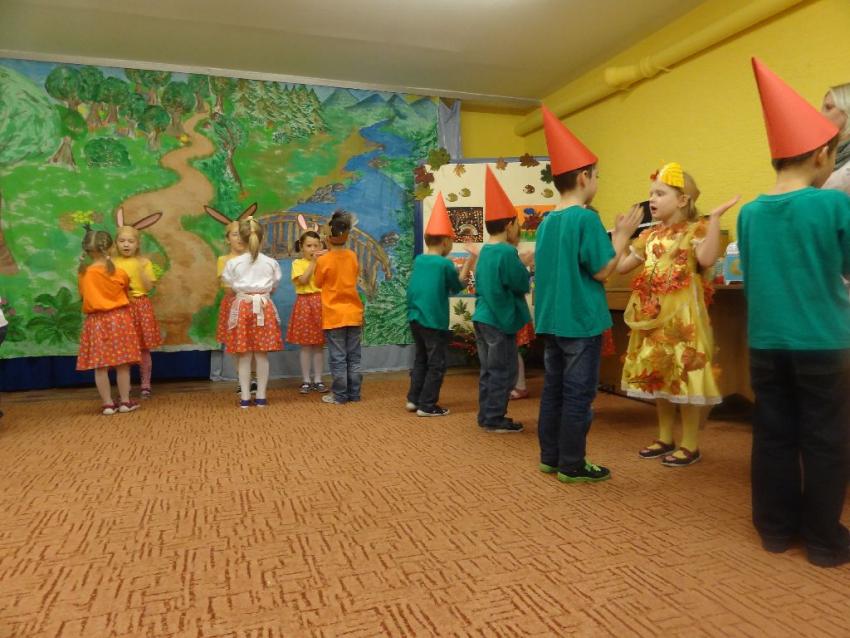 GRUPA KANGURKÓW PRZYGOTOWAŁA DLA SWOICH RODZICÓW WSPANIAŁY SPEKTAKL NA POŻEGNANIE JESIENI PT.,, O GĘSIARECZCE KASIENI I CUDOWNYCH LISTKACH PANI JESIENI" . PRZEDSTAWIENIE WRAZ Z TAŃCAMI I PIOSENKAMI WYPADŁO ZNAKOMICIE !